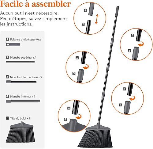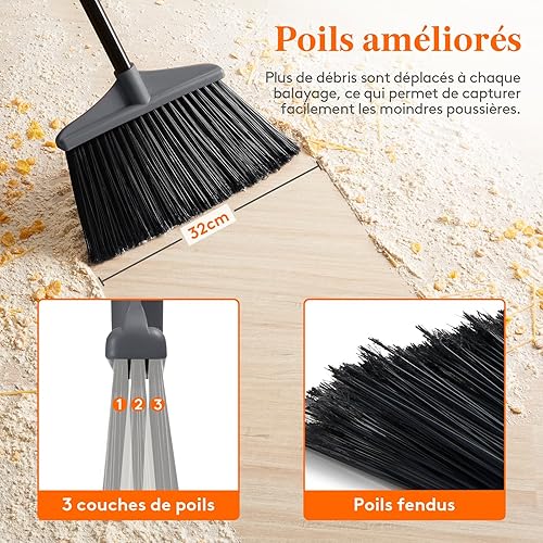 Le balai Lifewit, conçu pour une utilisation intérieure et extérieure, se distingue par sa robustesse. Il est doté d'une brosse souple et d’un manche extensible de 134,6 cm, idéal pour atteindre tous les recoins.