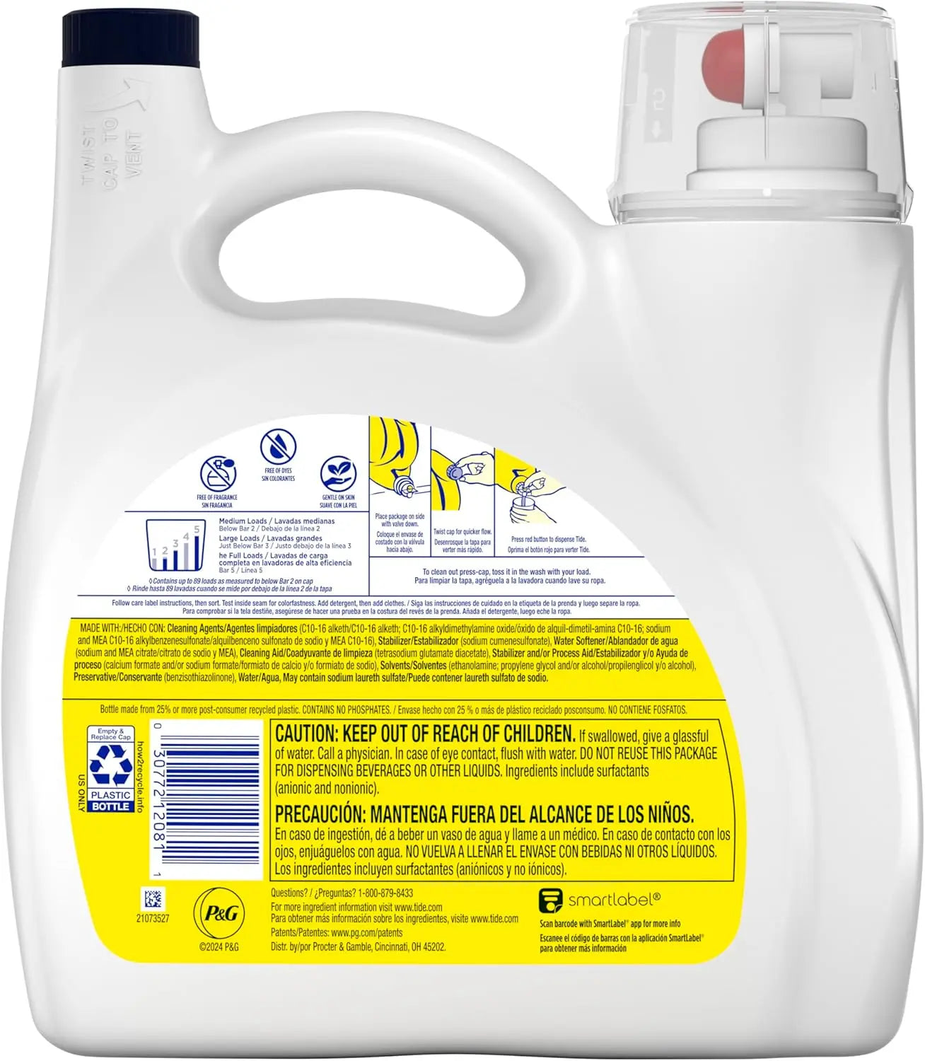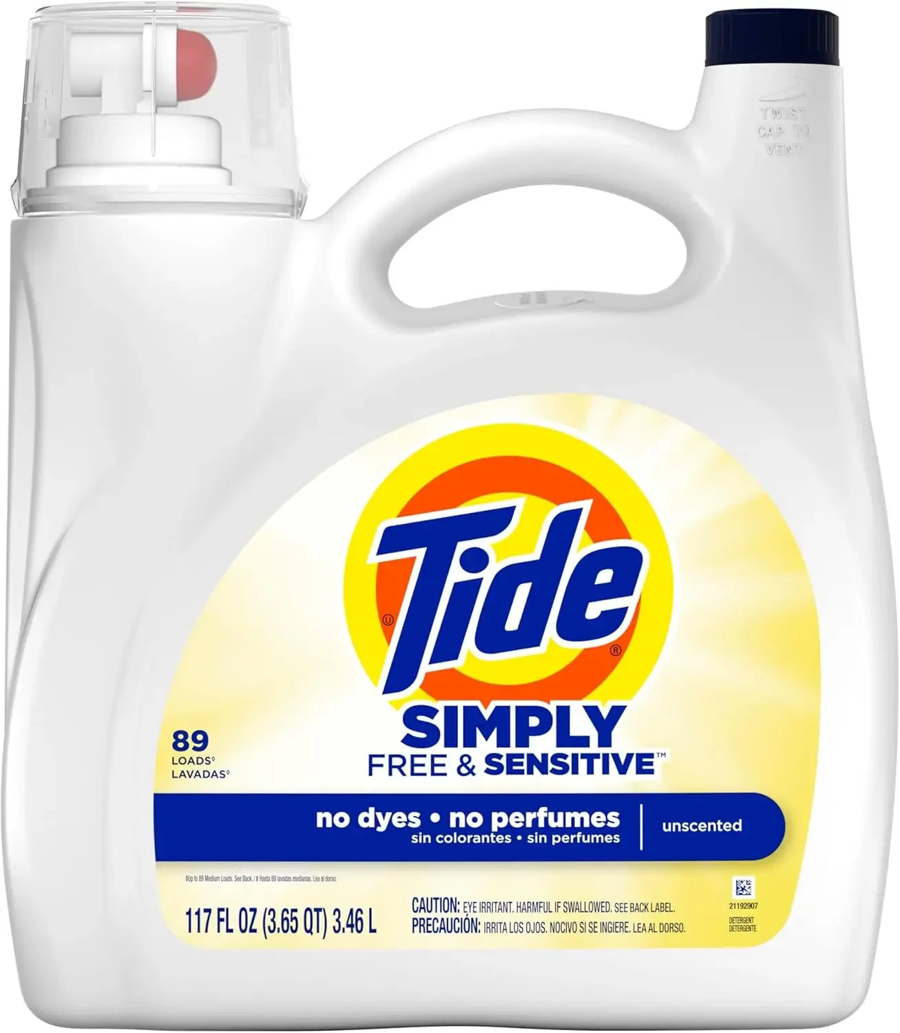 Lessive Liquide Tide Sensitive – Sans Parfum ni Colorant – 3,3 L (117 oz), 89 Lavages | Hypoallergénique, Douce pour la Peau, Efficace à l’Eau Froide, Compatible HE