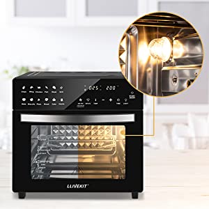 LLIVEKIT Friteuse sans Huile 26 L Mini Four électrique de 1700W avec écran LED, 12 programmes intégrés, 7 accessoires inclus,...