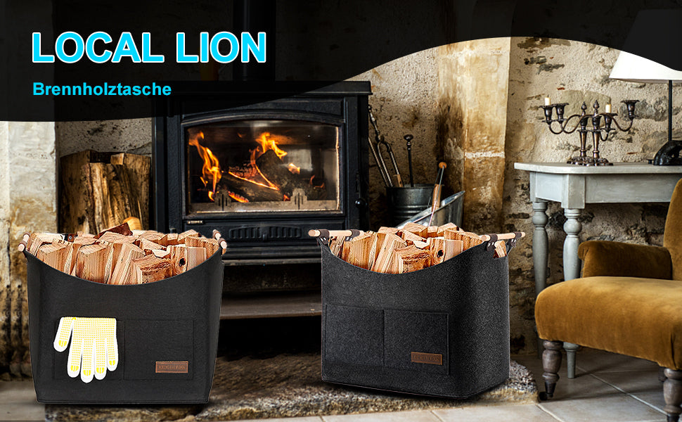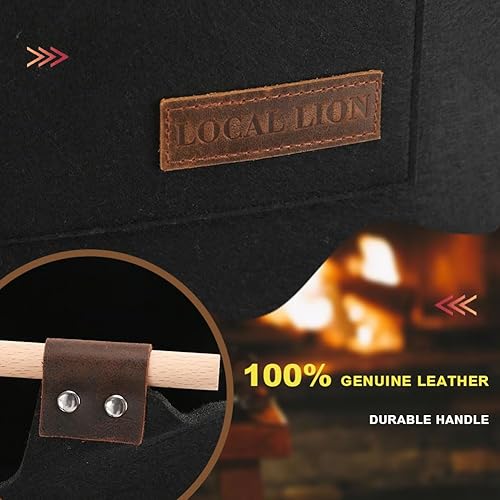 Le panier à bois LOCAL LION est conçu pour le stockage pratique du bois de cheminée. Il dispose de poignées en cuir véritable fixées sur des empiècements en bois, assurant une prise solide.