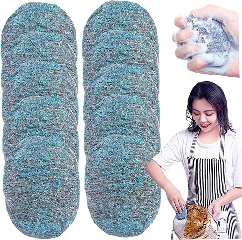 Lot de 10 tampons Jex en laine d’acier avec savon, offrant une action nettoyante efficace. Ces tampons réutilisables en acier à faible teneur en carbone produisent une mousse dense et absorbante, facilitant l’élimination des saletés tenaces tout en étant doux pour les surfaces.