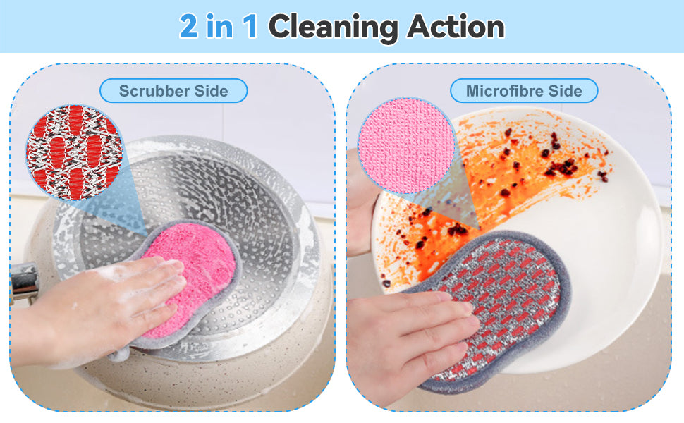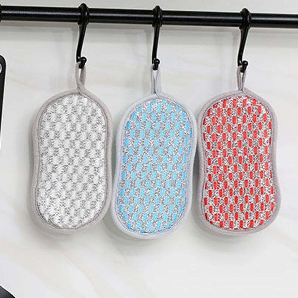 Cette éponge de cuisine double face combine microfibre et brosse pour un nettoyage efficace sur différentes surfaces, éliminant aisément saleté et taches d’huile.