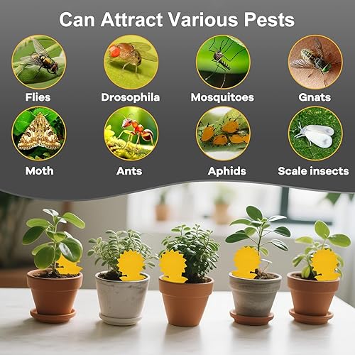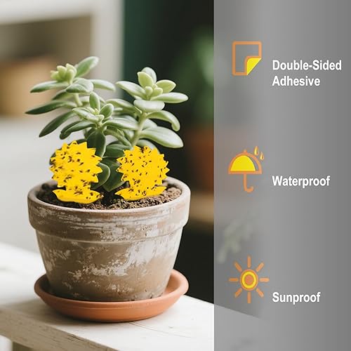 Ensemble de 50 autocollants jaunes conçus pour combattre les mouches des champignons et des fruits. Ces pièges adhésifs sont efficaces contre divers insectes nuisibles et conviennent parfaitement aux plantes d’intérieur comme d’extérieur, assurant un contrôle ciblé des populations de mouches.