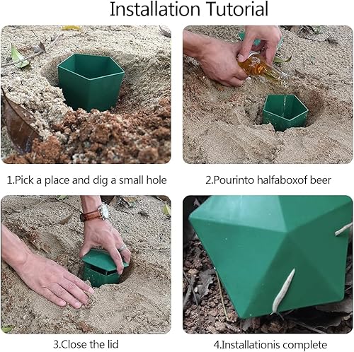 Faciles à installer, il suffit de creuser une petite fosse, d’y déposer le piège, de verser une demi-bouteille de bière, puis de fermer le couvercle.