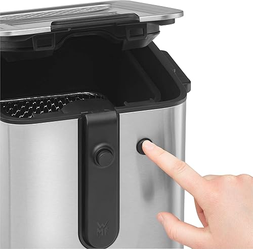 La mini friteuse WMF Küchenminis fonctionne avec graisse ou huile et comprend un coupe-pommes de terre. Avec une puissance de 1000 W et un réservoir d'huile amovible, elle garantit des frites parfaitement croustillantes. Fabriquée en acier inoxydable, elle allie durabilité et performance pour un usage professionnel et efficace.