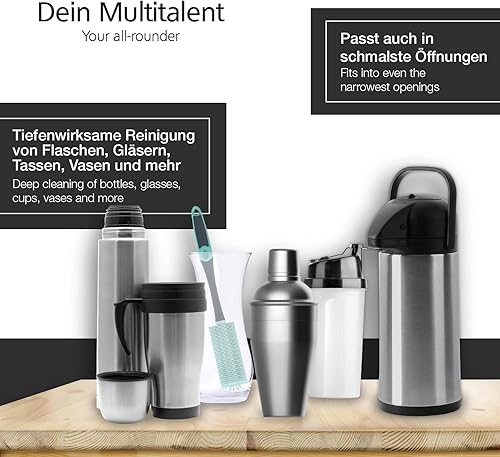Leur flexibilité permet d’atteindre les ouvertures les plus étroites, assurant un nettoyage profond pour bouteilles, verres, tasses et vases.