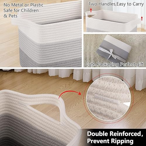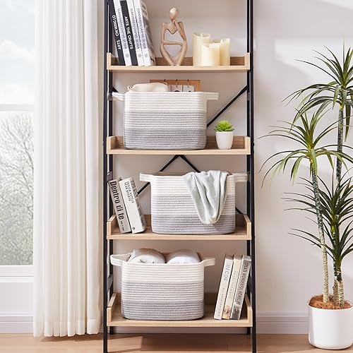 Lot de 3 paniers de rangement OIAHOMY en corde de coton tissée, parfaits pour organiser jouets, serviettes de bain et autres accessoires.
