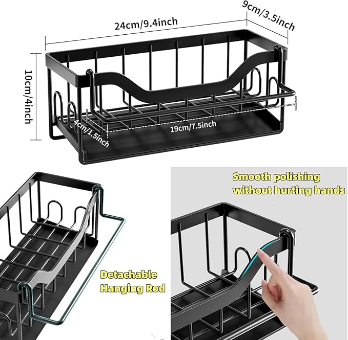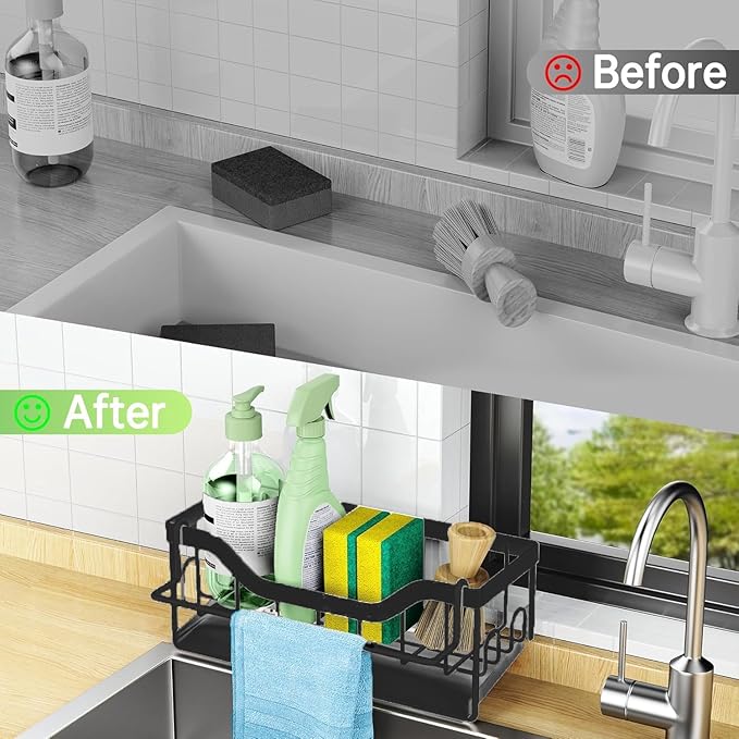 Compact et solide, il permet de ranger éponges, brosses et produits de nettoyage tout en optimisant l’espace autour de l’évier.