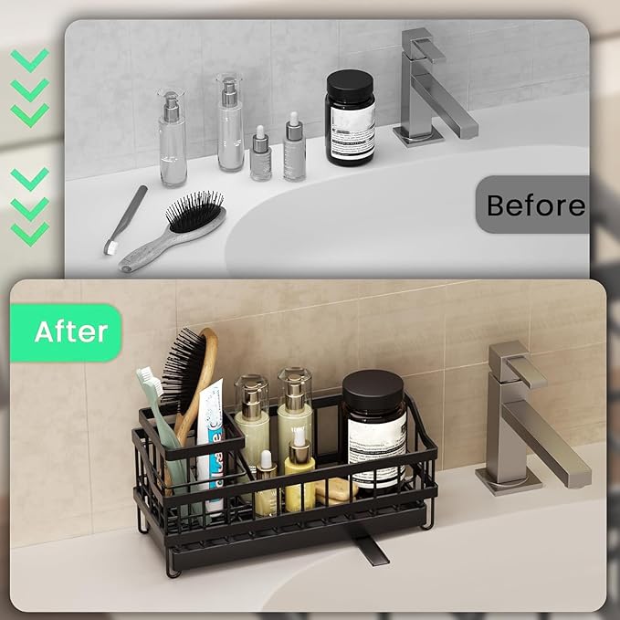 Conçu pour optimiser l’espace, il offre un rangement pratique pour savon, éponges et brosses.