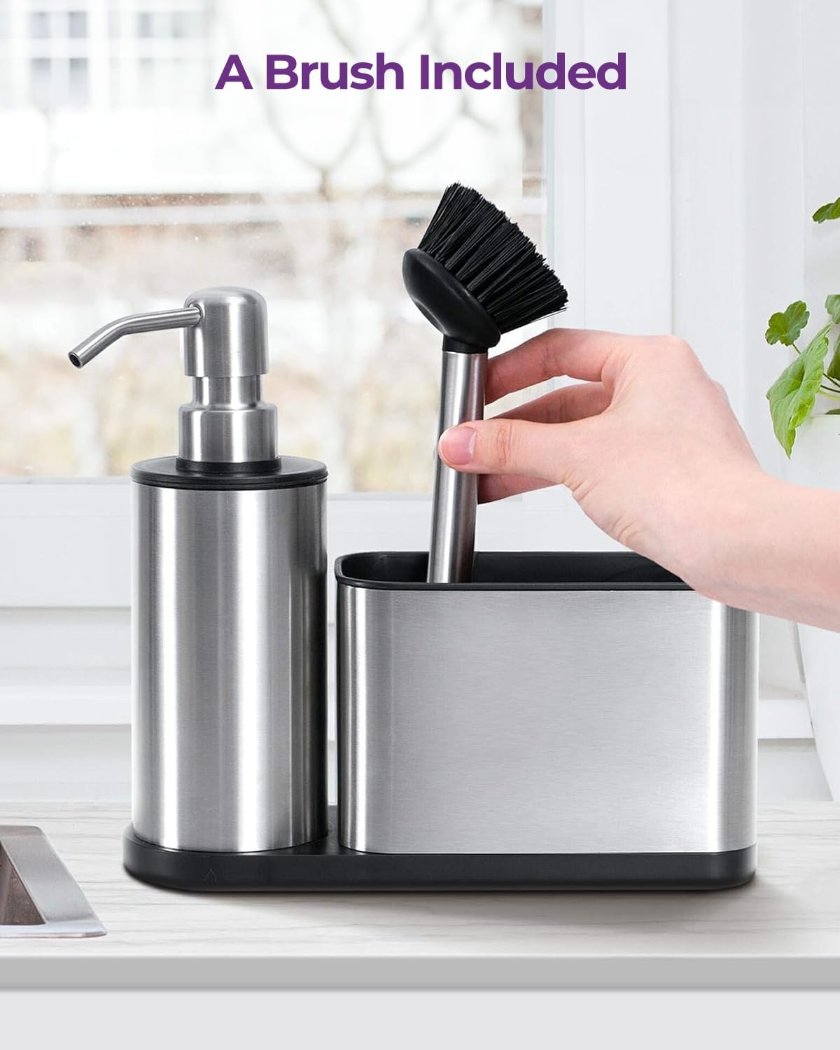 Organiseur d’évier équipé d’un distributeur de savon intégré et d’un support pour éponge