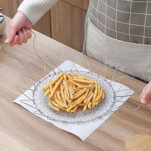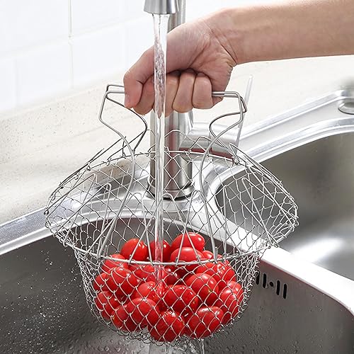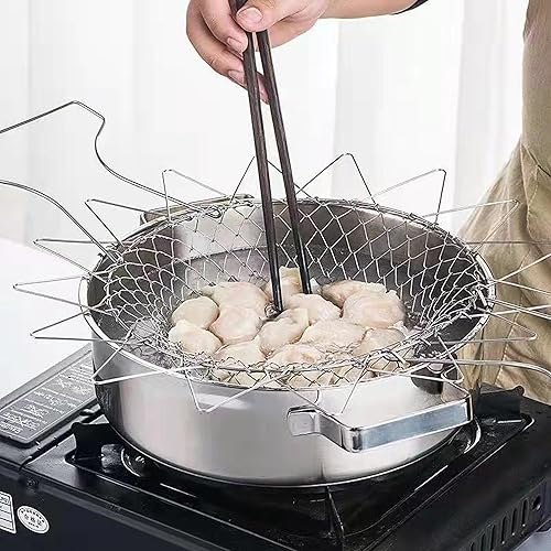 Compact et peu encombrant une fois replié, il se range facilement. Parfait pour frire, rincer ou égoutter une variété d’ingrédients, il simplifie vos préparations en cuisine avec efficacité et finesse.
