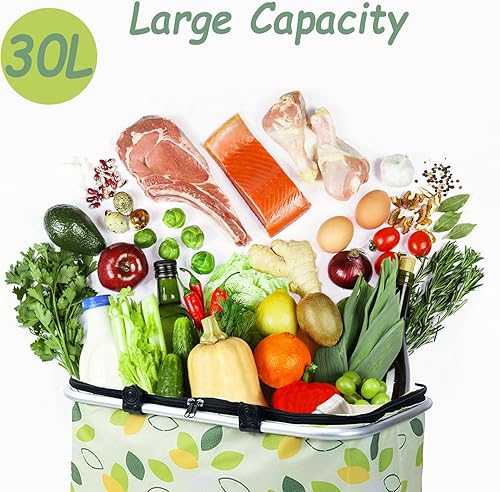 Panier isotherme de 30 l - Pliable et isolé - Avec couvercle - Cadre en aluminium - Panier isotherme épais - Avec poignée - Pour les pique-niques en plein air - Vert