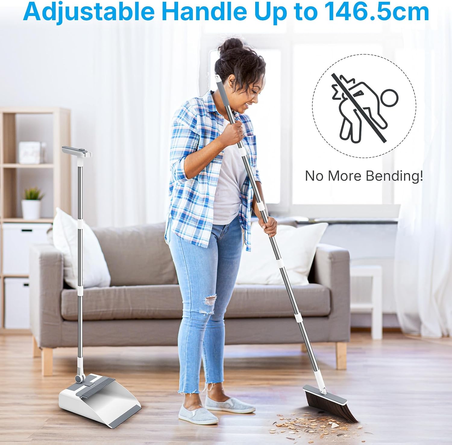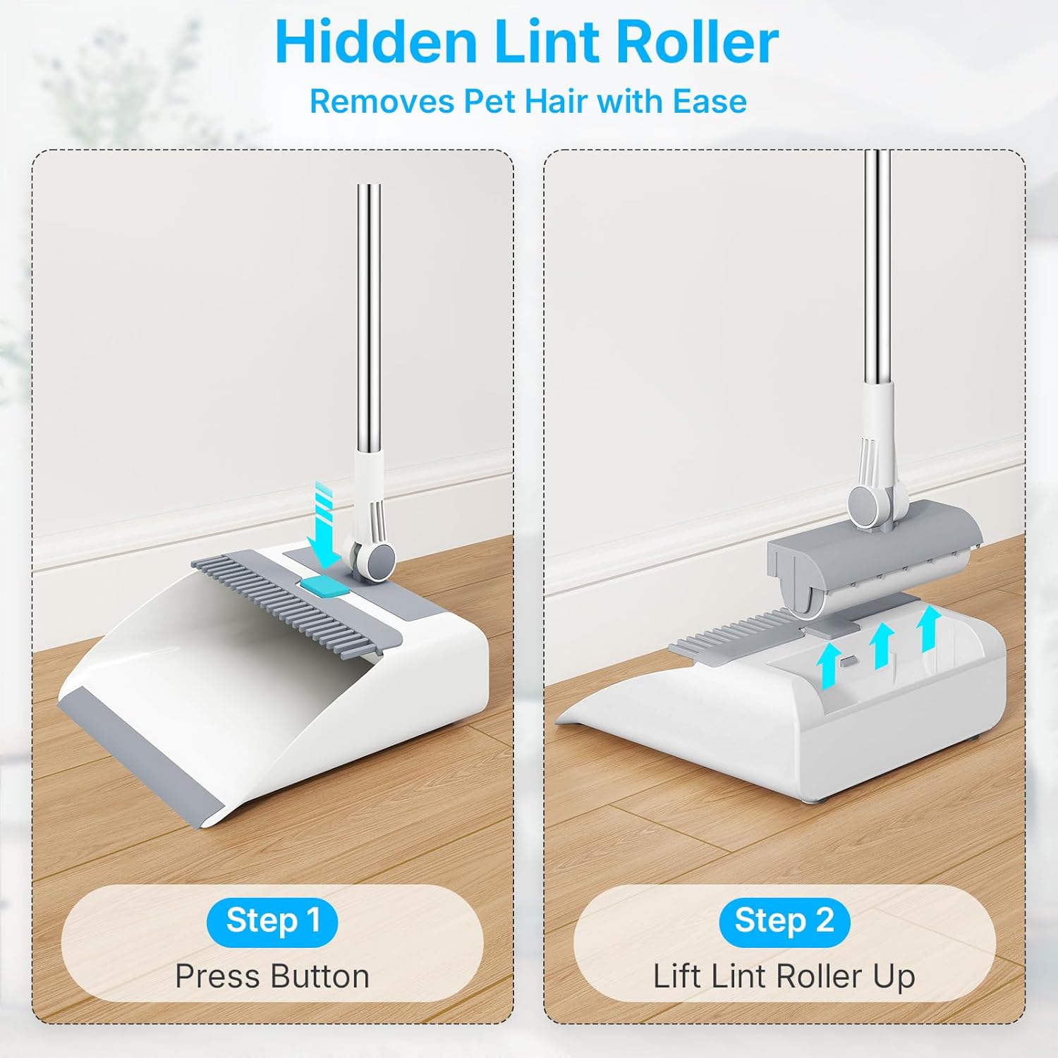 Ensemble Pelle Balayette et Balai Long Manche 3-en-1 avec Rouleau pour Poils d’Animaux, Balayette avec Pelle à Dents de Peigne, Brosse Anti-Poil idéale pour un entretien efficace de la maison.