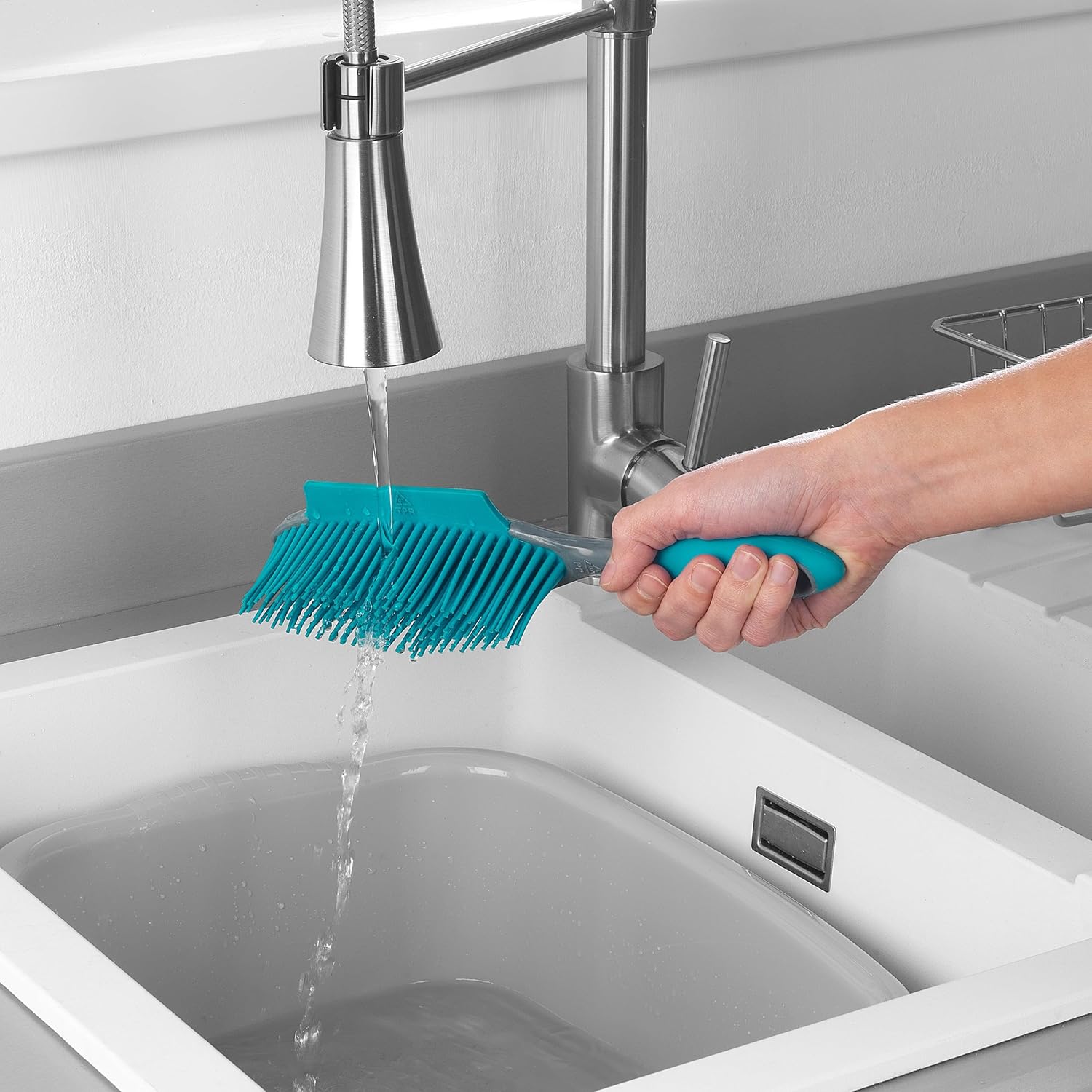 Ses dimensions compactes (30 x 22 x 6,5 cm), la bordure souple et les soies douces permettent de collecter facilement miettes, poussière et saleté.