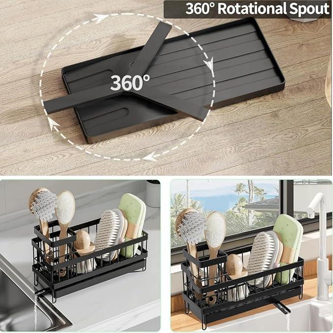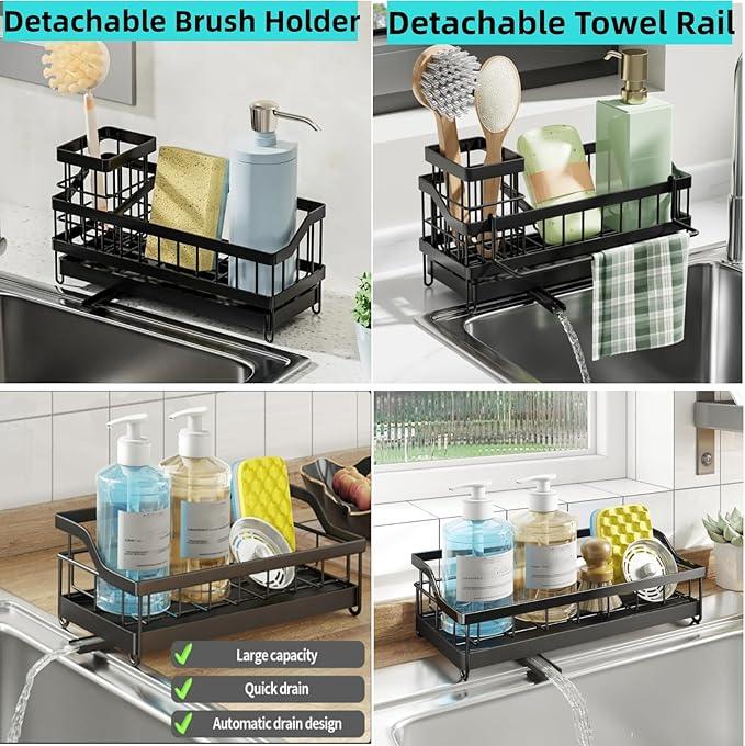 Son design compact avec compartiments multiples permet de ranger éponges, brosses, liquide vaisselle et serviettes, optimisant l’espace de votre cuisine tout en gardant votre évier ordonné et propre.