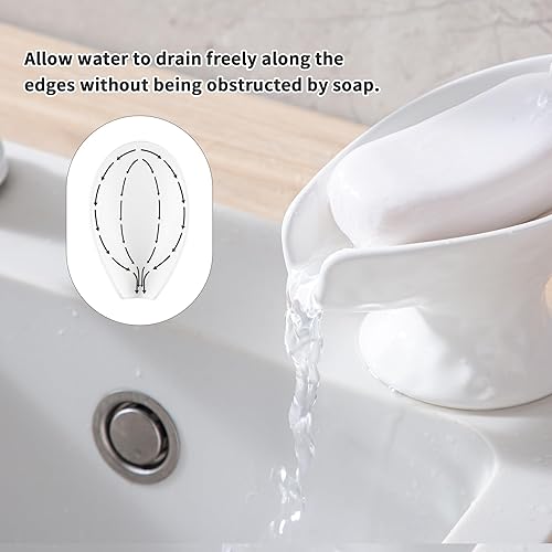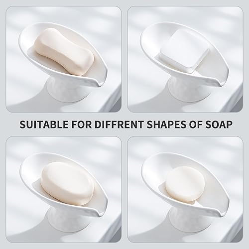 Porte-savon auto-drainant en céramique blanc mat, conçu en forme de feuille pour un usage pratique en salle de bain, cuisine ou douche. Il maintient le savon au sec tout en étant simple à nettoyer, alliant esthétique et fonctionnalité dans un design épuré.