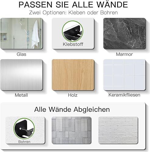 Sa colle ultra adhérente supporte jusqu’à 10 kg, garantissant une fixation solide adaptée aux grands flacons de shampoing, gel douche et autres accessoires lourds.