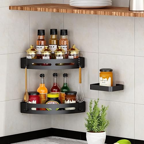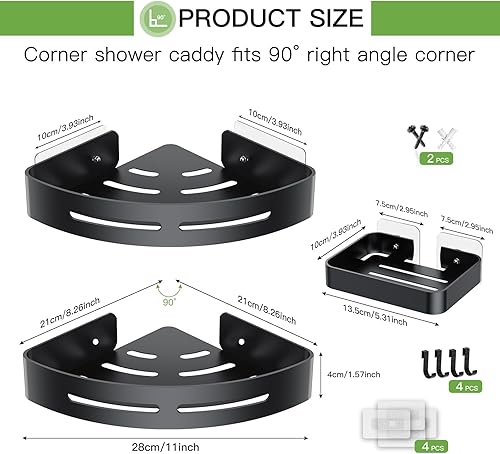Conçue pour angles droits, elle ne convient pas aux coins arrondis. Fabriquée en acier robuste avec revêtement antirouille, elle comprend 2 étagères, 5 adhésifs et un porte-savon pour un rangement complet et durable.