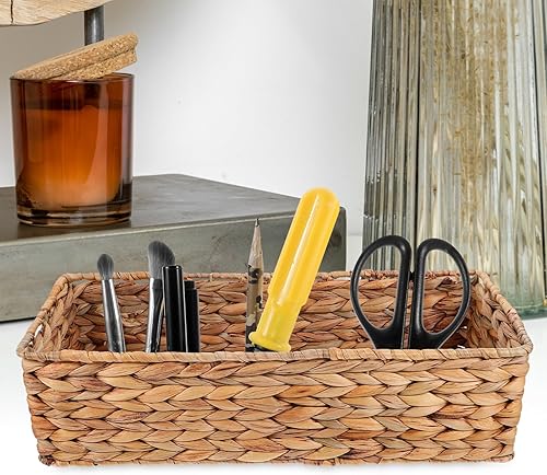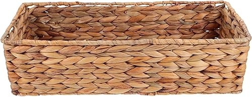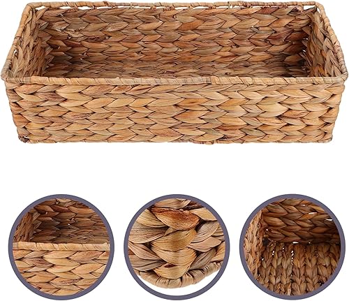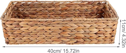 Panier rectangulaire PRETYZOOM en jacinthe d'eau, idéal pour le rangement. Ce panier tressé, au style pastoral, s’adapte parfaitement comme corbeille ou réservoir sur une étagère ou un bureau, alliant praticité et esthétique naturelle.