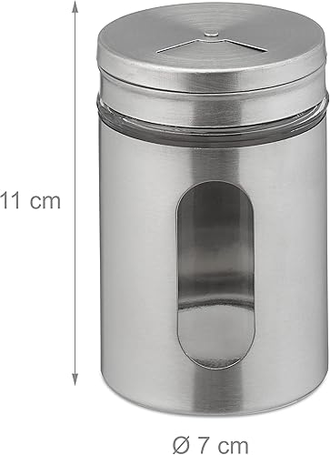 Relaxdays offre un ensemble de 6 pots à épices en verre et acier inoxydable, équipés de trois types d’ouvertures pour saupoudrer. Chaque pot offre une capacité de 290 ml et présente une finition argentée élégante.