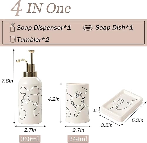 【Ensemble de 4 distributeurs de savon】 : comprend un distributeur de savon, un porte-brosse à dents, un porte-savon et un gobelet de salle de bain. Il est adapté pour organiser les ustensiles de salle de bain et rend votre salle de bain facile à garder propre et bien rangée.