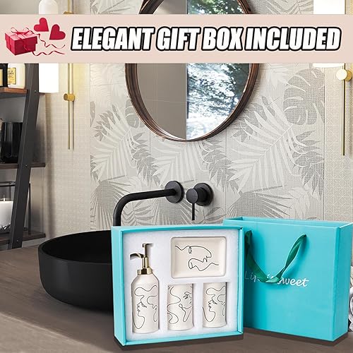 【Coffret cadeau parfait】: L'ensemble de distributeur de savon de salle de bain est le meilleur choix pour offrir avec une apparence élégante, emballé dans une belle boîte et bien fini, qui peut gagner l'amour de votre famille, vos amis, vos camarades de classe et vos collègues. Un excellent cadeau pour une pendaison de crémaillère, Noël, un mariage.