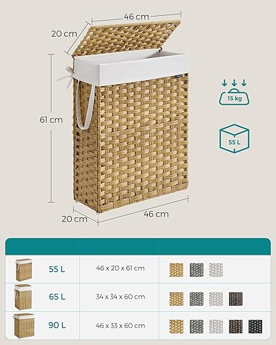 Le panier à linge SONGMICS en rotin synthétique, couleur jaune d'oie, se distingue par sa finesse et sa robustesse. Il est doté d’un couvercle, de poignées pratiques et d’une doublure amovible, offrant une solution élégante et fonctionnelle pour ranger vos vêtements, couvertures ou linge de buanderie. Ce modèle pliable facilite le rangement lorsqu’il n’est pas utilisé, alliant efficacité et gain de place avec une touche esthétique.