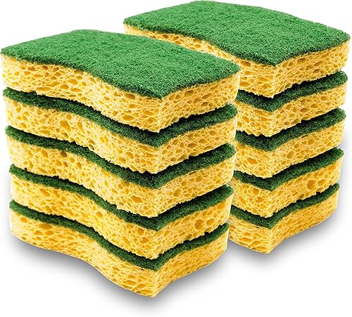 Ensemble économique de 10 éponges double face SQUATCH®, conçues pour la vaisselle. Chaque éponge offre une face verte pour un récurage intensif et une face ultra absorbante pour un nettoyage efficace en cuisine.