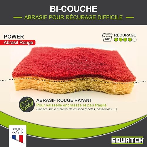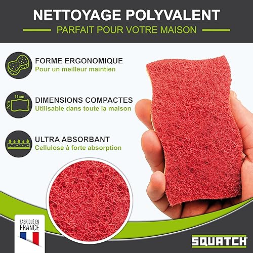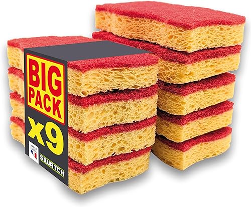 Conçues avec deux couches distinctes, ces éponges offrent un côté récurant rouge puissant pour éliminer efficacement les taches tenaces, tandis que la face en cellulose jaune douce nettoie sans rayer.
