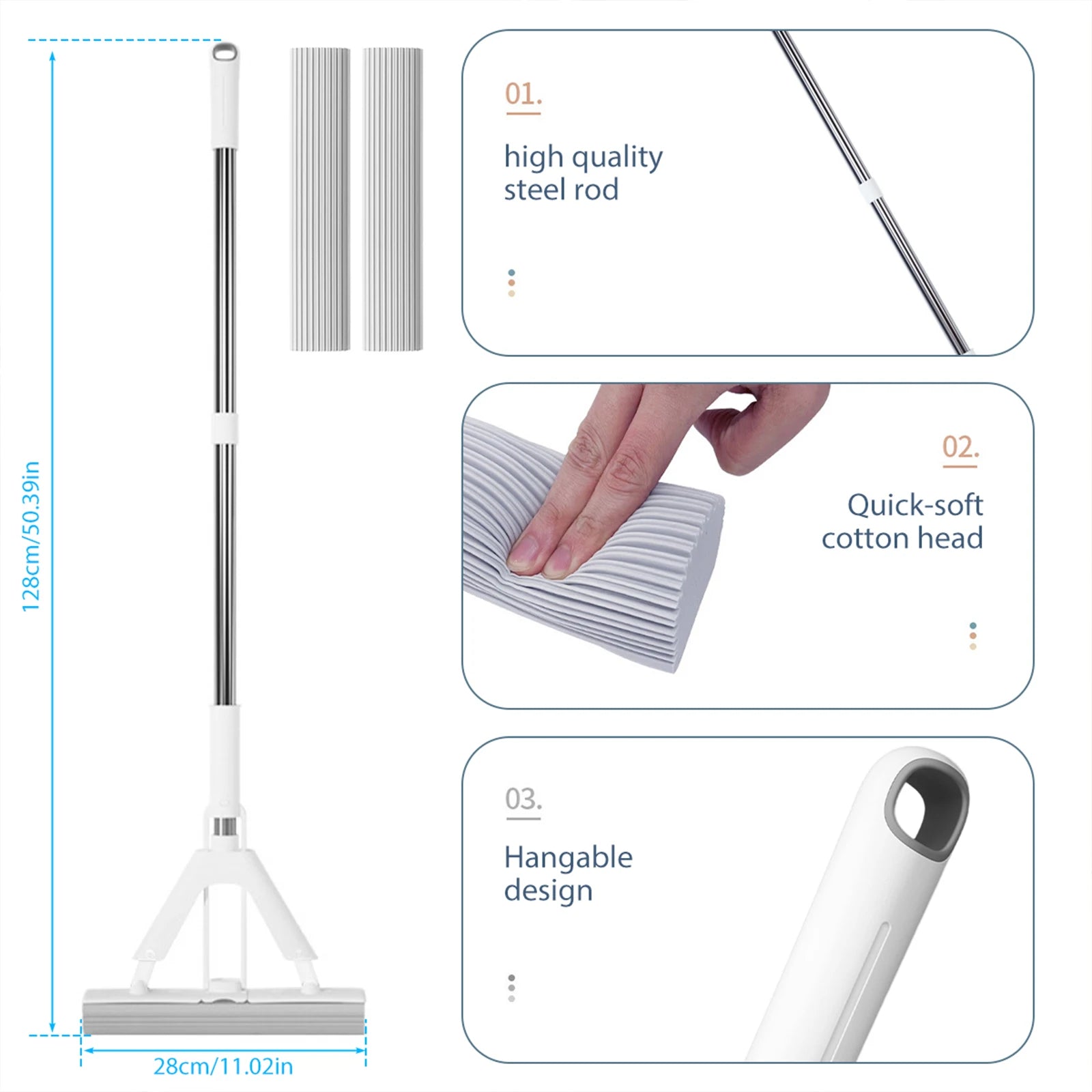 [Super absorbant] Cette serpillière éponge est super absorbante et capable d'éliminer toutes sortes de poussières et de saletés pour des sols propres. Une rainure spéciale sur le dessus de la tête de la serpillière facilite son remplacement et son installation. Il est recommandé de la remplacer régulièrement.