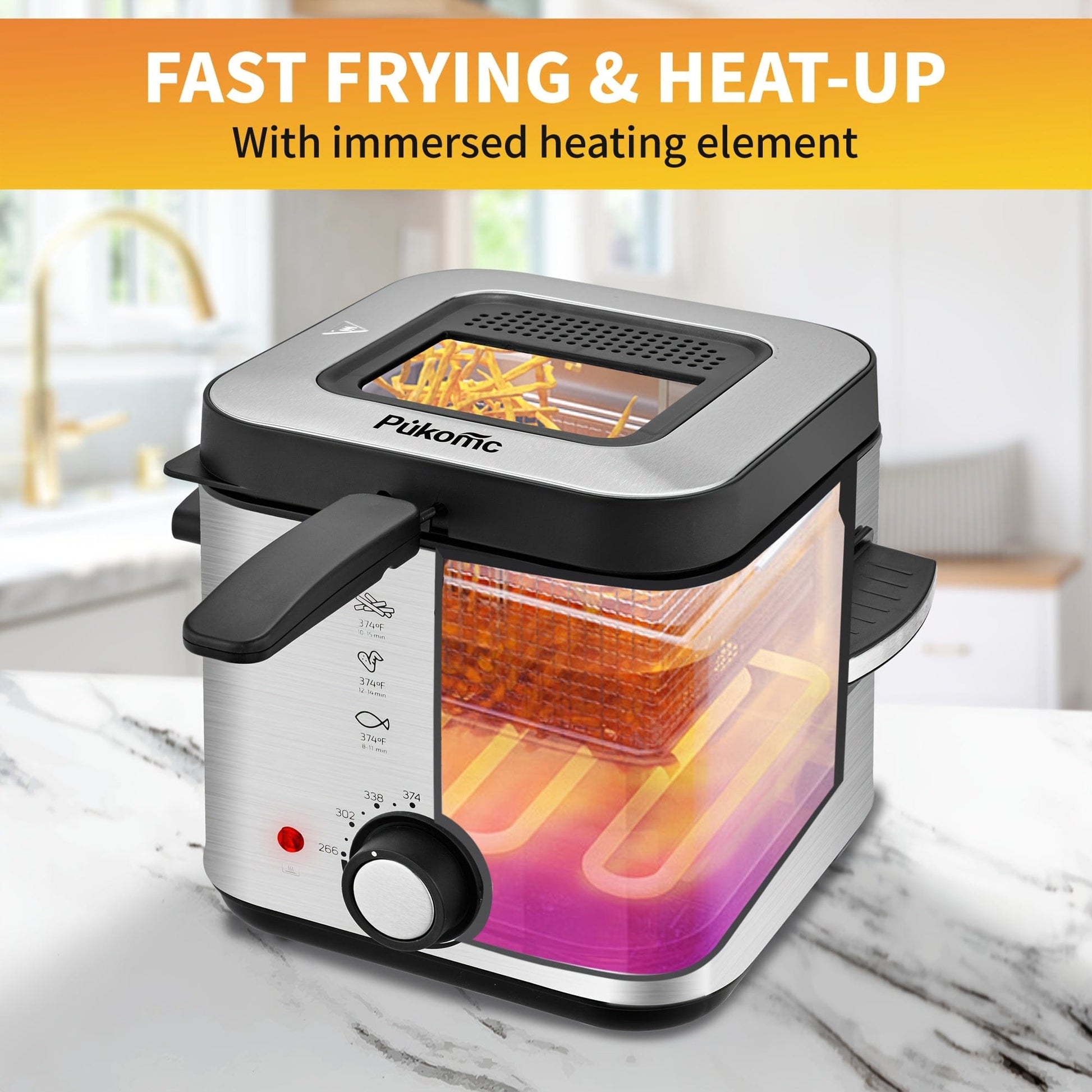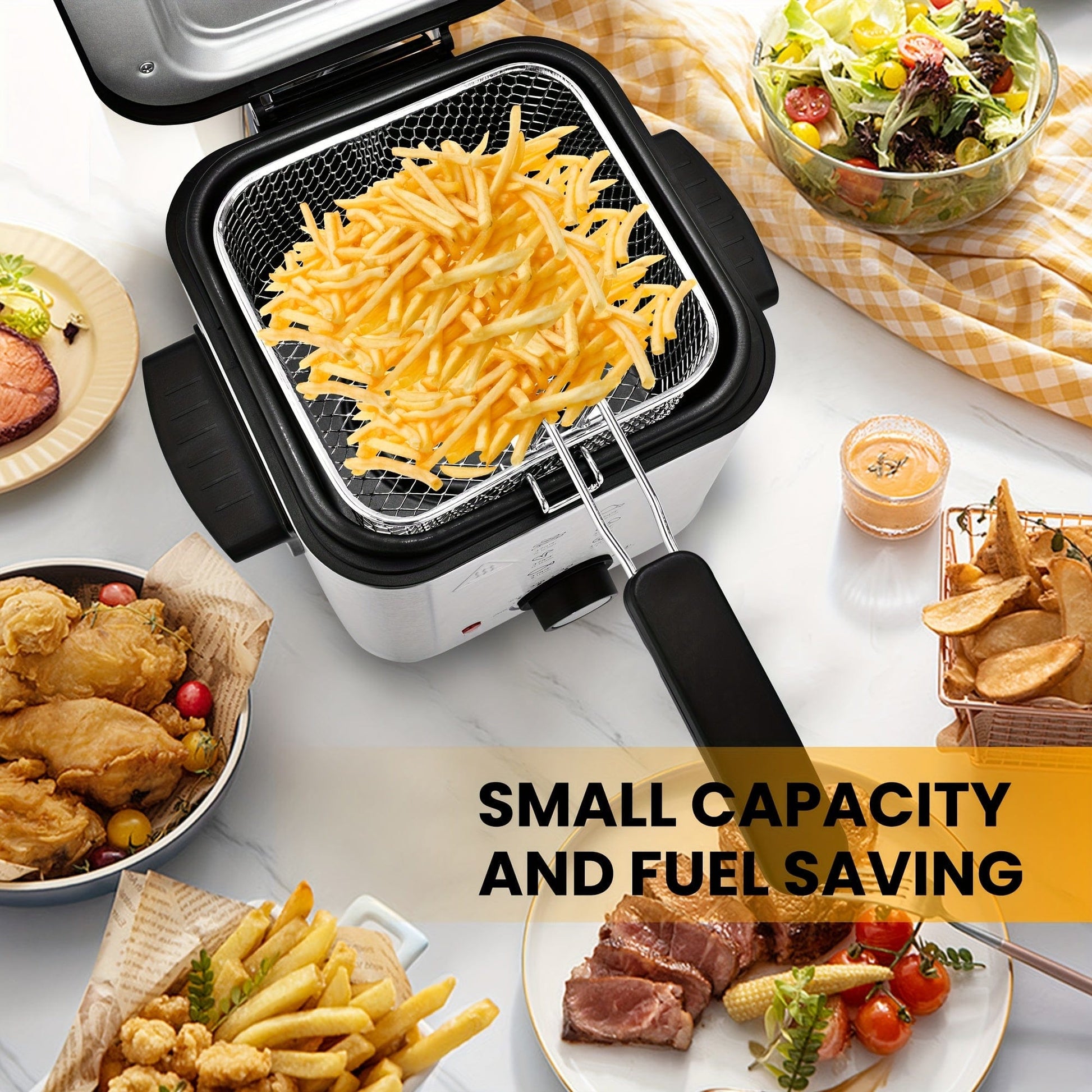SUSTEAS 1500W Electric Deep Fryer with Basket, 84.5oz Large Capacity, Adjustable Temperature, Easy-Clean Pot, Foldable Handle, Compact Durable Design - Stylish Kitchen Appliance & Essential Tool for Family Dinners, Parties, E