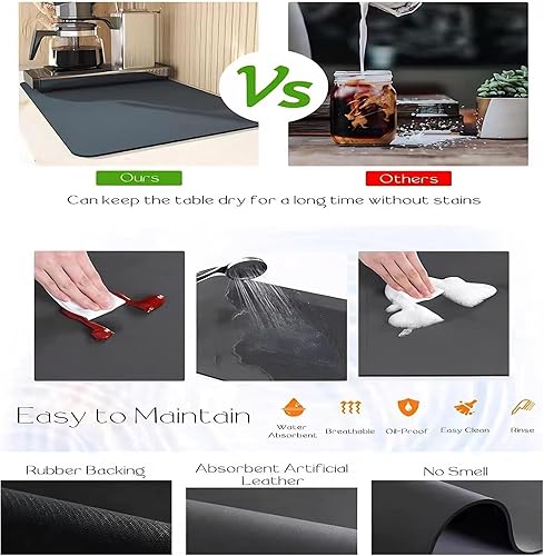 Sa surface absorbe rapidement les éclaboussures pour protéger votre plan de travail, réduisant ainsi la fréquence de nettoyage. Compatible avec toutes les tailles de machines à café, il peut être découpé selon vos besoins et sert également de tapis polyvalent pour la cuisine, le bar ou la salle de bain.