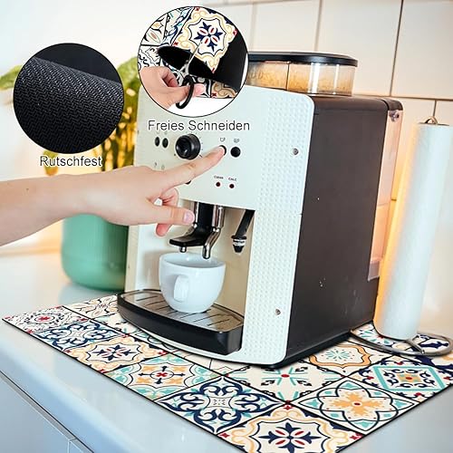 Tapis d'égouttement pour machine à café de 40 x 60 cm, conçu pour absorber rapidement l'eau et faciliter le séchage. Idéal pour la cuisine, ce tapis offre une surface absorbante qui aide à garder vos espaces propres et secs après utilisation de votre machine à café.