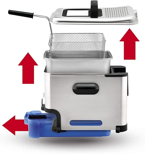 La friteuse semi-professionnelle Tefal Oleo Clean offre une capacité de 3,5 L et une puissance de 2300 W, adaptée pour préparer des portions jusqu’à 6 personnes. Elle est équipée d’un système de filtration automatique de l’huile, d’un minuteur digital et d’un thermostat précis pour un contrôle optimal de la cuisson.