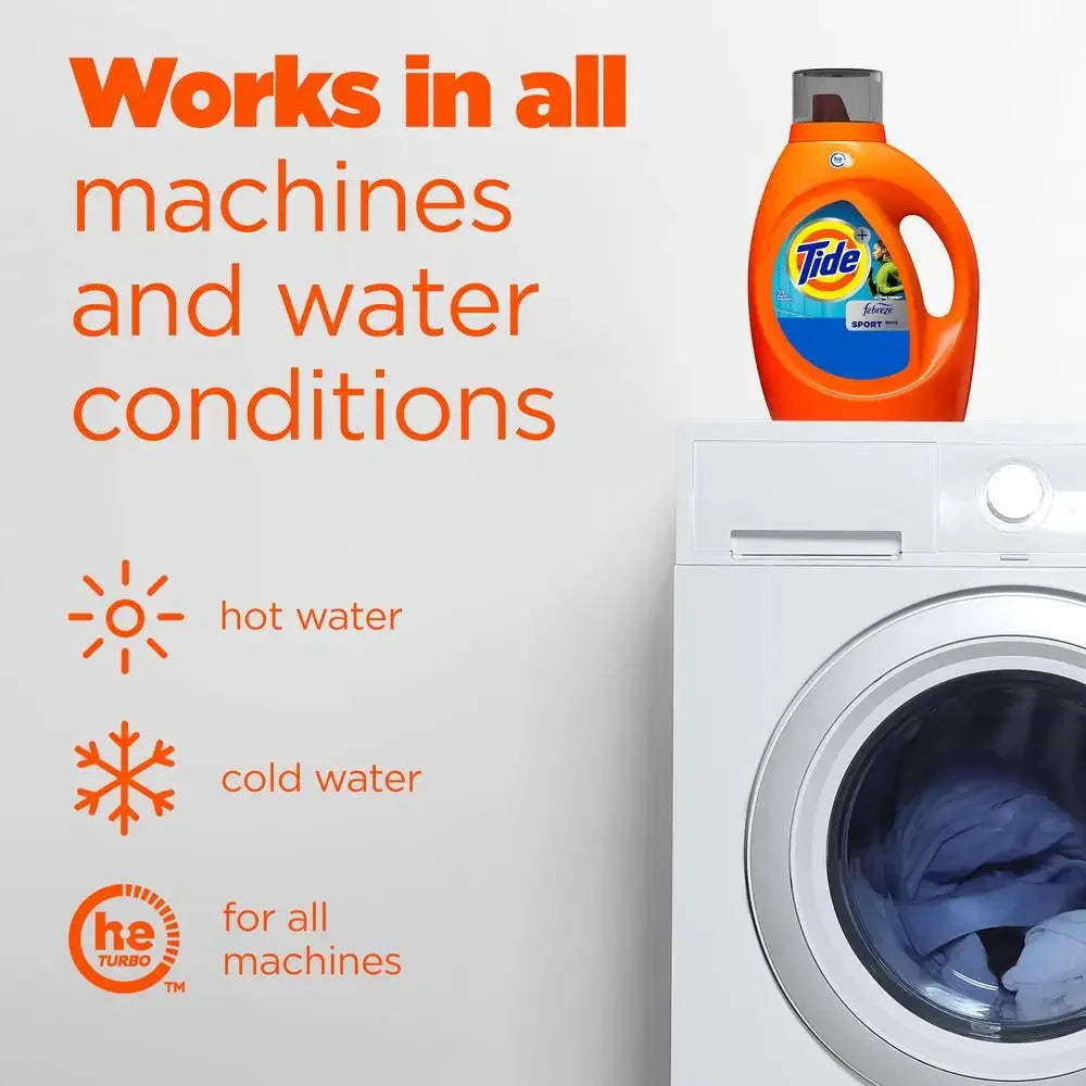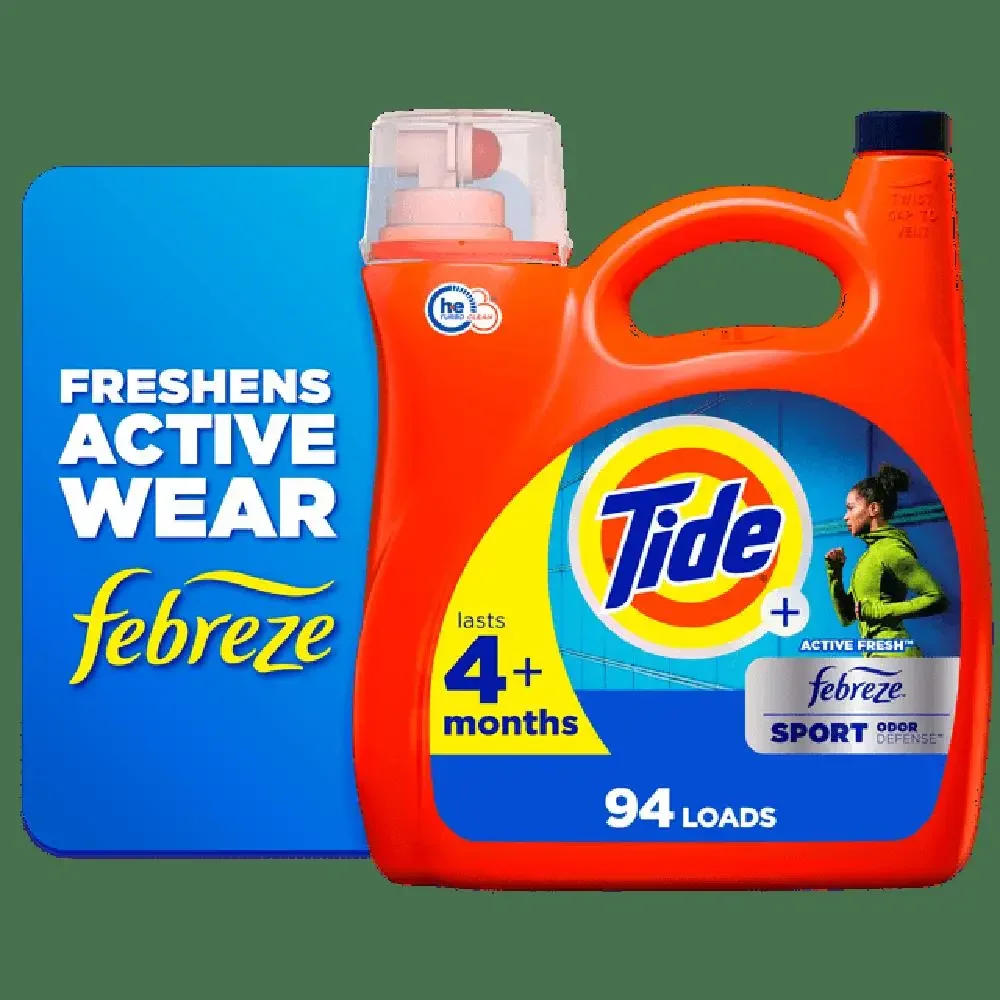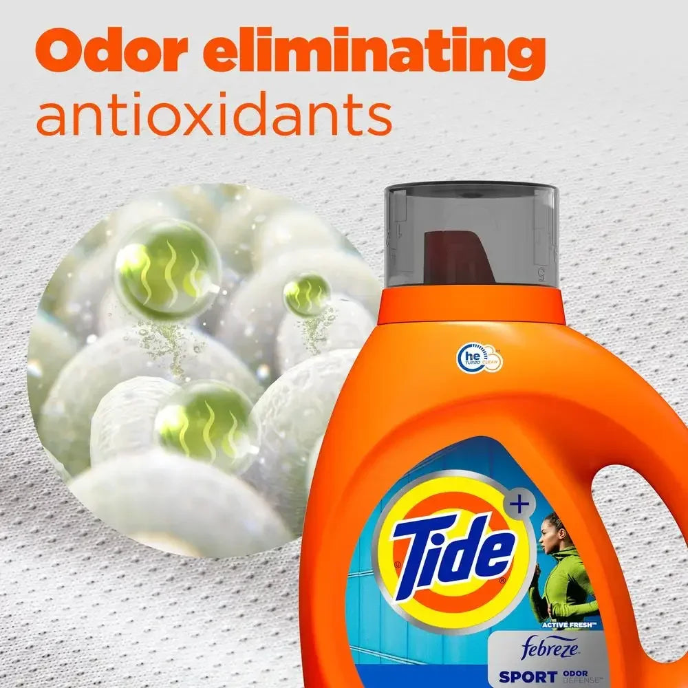 Tide Plus Febreze Sport Odor Defense HE Turbo Clean liquid laundry detergent offers excellent clean and odor removal, plus the Febreze freshness that helps your workout and athletic gear stay fresh up to 3x longer*. It effectively targets tough stains and removes even week-old sweat odors. Also, the Tide's formula contains special scent-renewal technology that releases freshness as you move, helping keep your fabrics smelling great all day. Enjoy a wonderful scent experience that lasts and benefit from even more odor-fighting power. 132 fl oz, 94 loads. *vs. Tide Original