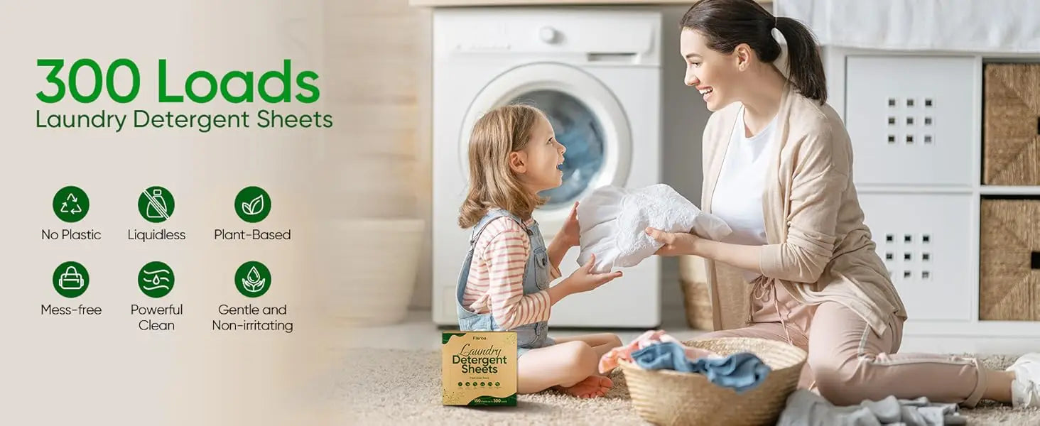 Travel Laundry Detergent Sheets 300 Loads Eco-friendly Washing Detergent Sheets Plastic-Free Washer Sheets, Fresh Linen