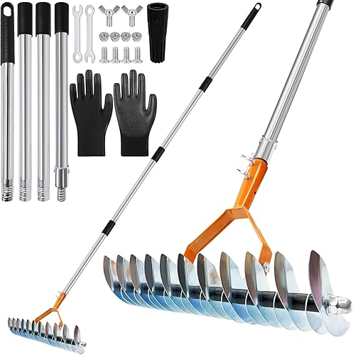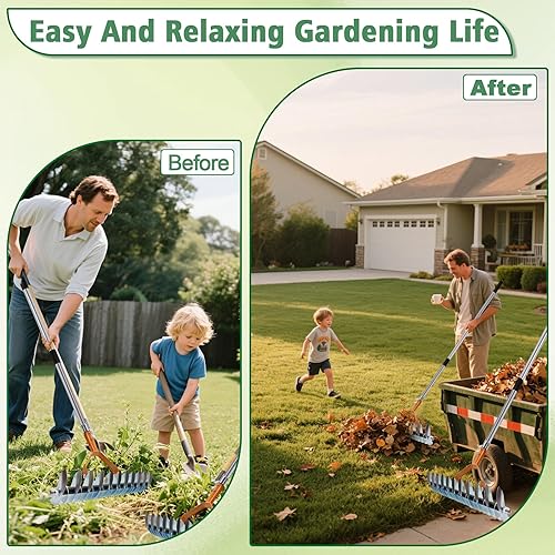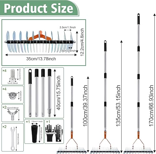 Des gants en caoutchouc respirants sont inclus pour protéger vos mains. Fabriqué en acier inoxydable de haute qualité, ce râteau est à la fois léger et résistant. Ses feuilles robustes mais non coupantes assurent une utilisation sécurisée, tandis que son traitement antirouille avancé garantit une longue durée de vie sans corrosion.