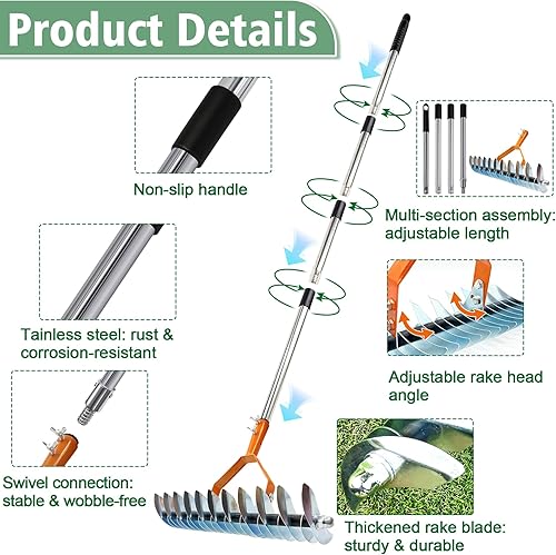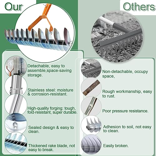 Cet ensemble de râteaux de jardin est parfait pour les passionnés de jardinage manuel. Sa poignée amovible en acier inoxydable est solide, durable, simple à monter et à ranger. En ajustant le nombre de sections, vous évitez de vous pencher excessivement, réduisant ainsi la fatigue lombaire.