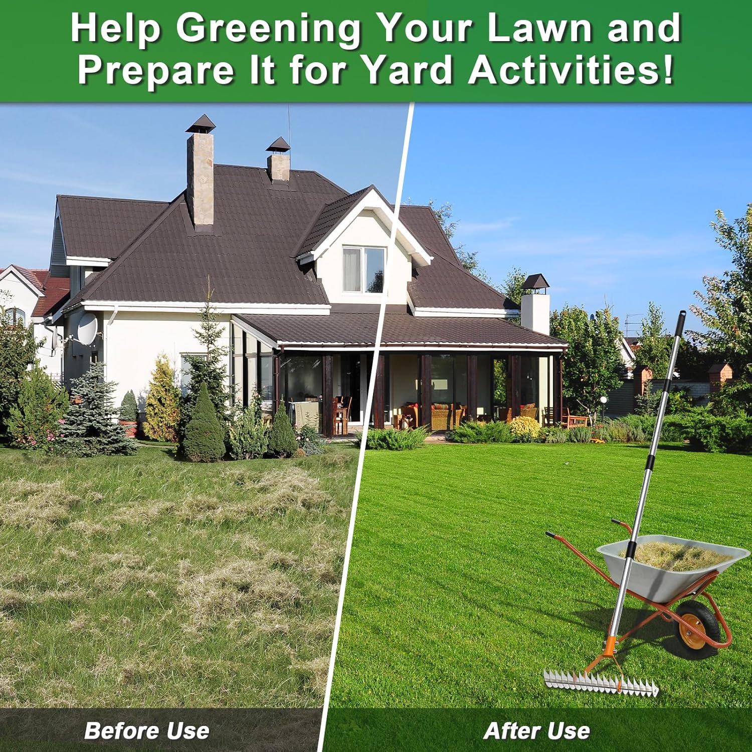 Avant d’utiliser le râteau de scarificateur TZEKING, regardez attentivement la vidéo de montage de 2 minutes pour un assemblage facile et rapide. La couleur peut varier selon l’écran. Les dimensions sont mesurées à la main et peuvent légèrement différer. Pour toute question, contactez-nous ; nous répondons sous 24 heures.