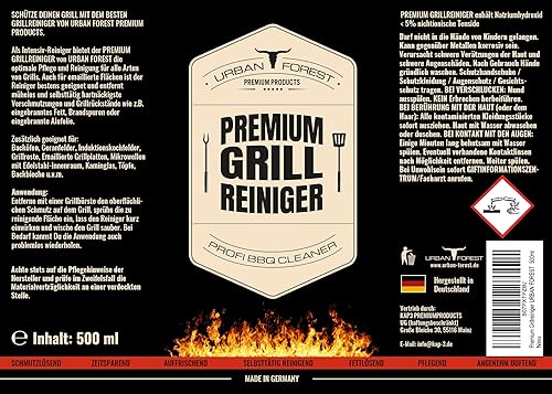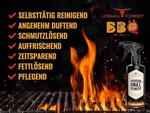 URBAN FOREST® Nettoyant pour barbecue premium de 500 ml, doté d'une formule active puissante, élimine efficacement les dépôts résistants, la suie et les graisses. Convient parfaitement pour les barbecues à gaz, les grilles et les surfaces en acier inoxydable.