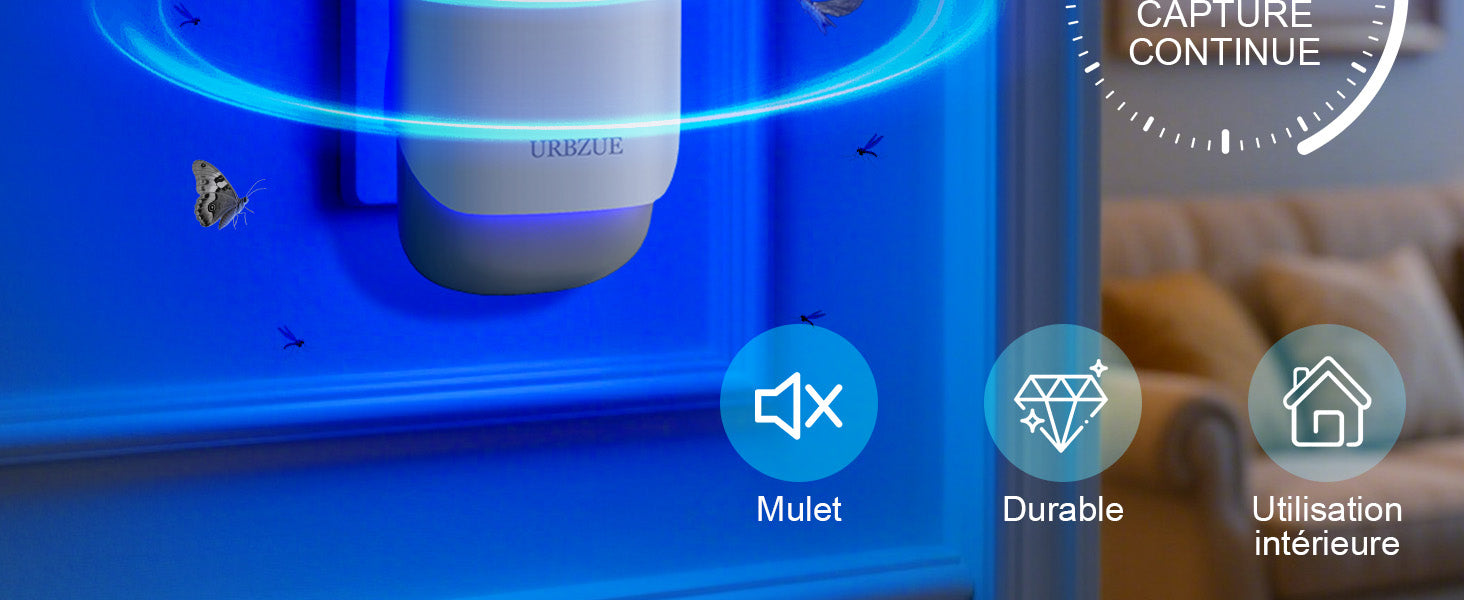 Son fonctionnement silencieux sans haute tension garantit une utilisation sécurisée. Sans pesticides ni produits chimiques, il offre une solution inodore, adaptée à un usage continu dans des environnements avec enfants et animaux.
