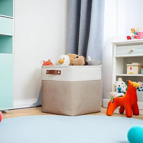VIIHTYISA propose un ensemble de 4 boîtes de rangement en tissu, mesurant 33 x 38 x 33 cm, idéales pour organiser vêtements, étagères et armoires. Leur design en kaki et blanc s’intègre facilement dans différents environnements.