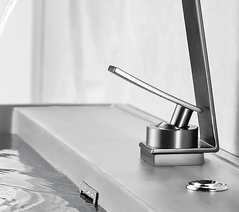 Washbasin Hot and Cold Faucet, Brass Minimalist Washbasin, Waterfall Style Bathroom, Household Washbasin Faucet