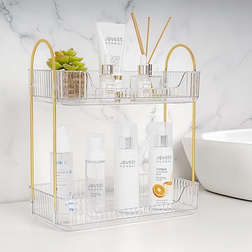 cette étagère de salle de bain à deux niveaux, compacte et transparente, est idéale pour organiser soins et maquillage. Parfaite...