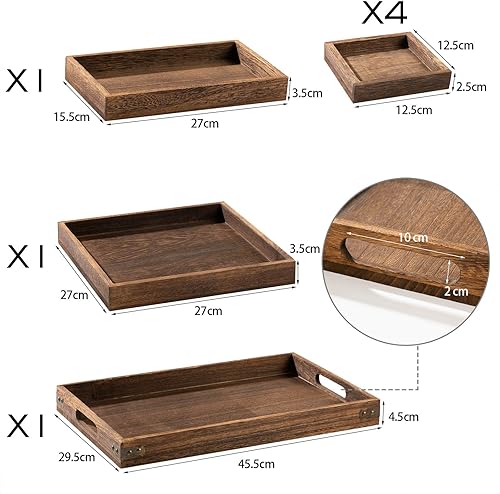 Le set Yangbaga de 7 plateaux de service en bois de paulownia est doté de poignées pratiques.