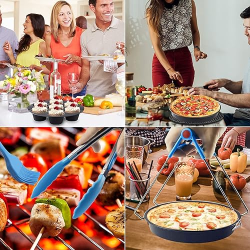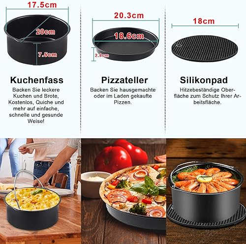 Compatible avec plusieurs marques populaires telles que COSORI, Ninja, Tefal, Uten et Cecotec, ce kit complet inclut notamment un tonneau à gâteau, une poêle à pizza, un tapis en silicone, plusieurs supports en acier inoxydable 304, des brochettes, ainsi que des outils pratiques comme une pince et une brosse à huile en silicone.